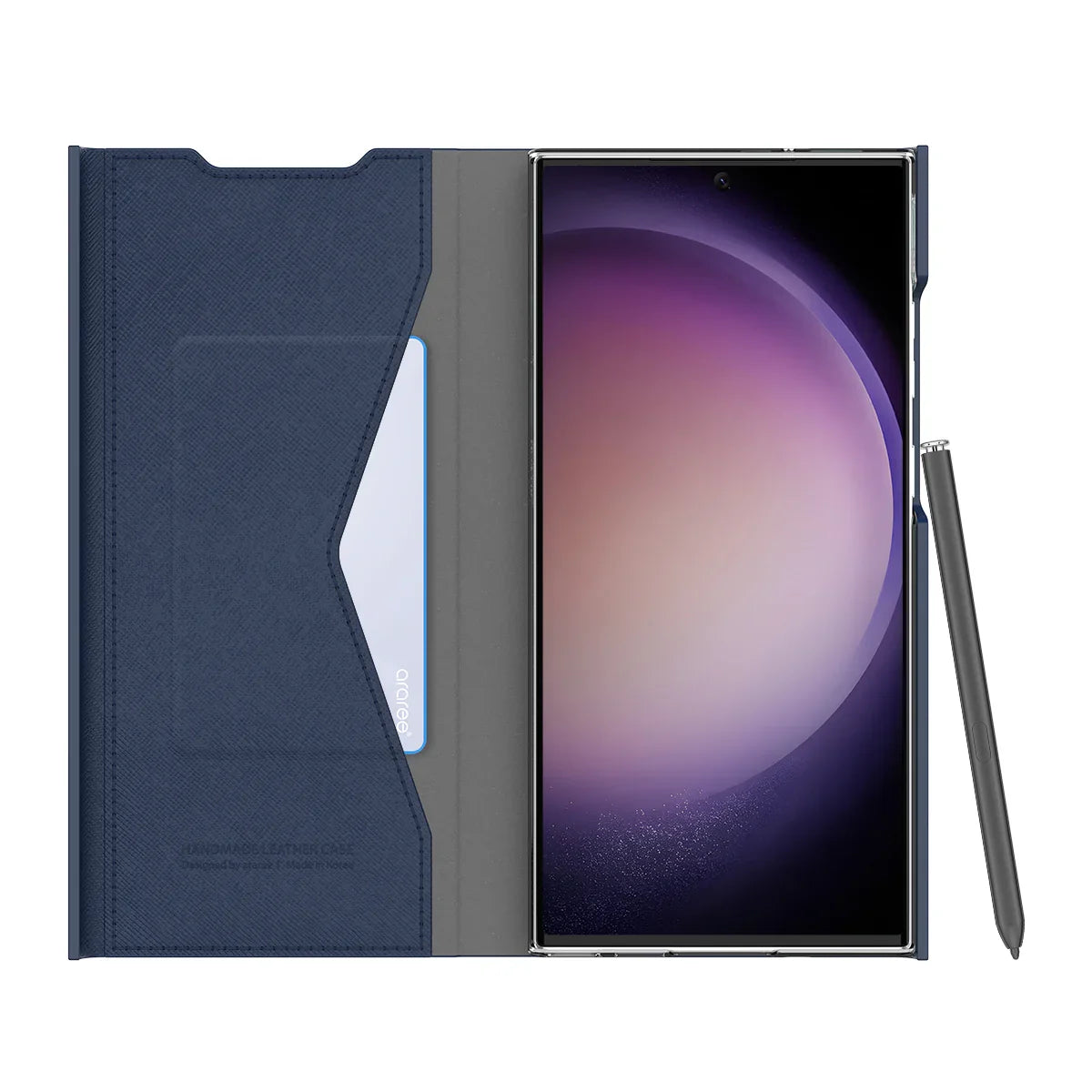 Araree Bonnet Dairy Stand Wallet Case For Samsung Galaxy S23 Ultra – Ash Blue