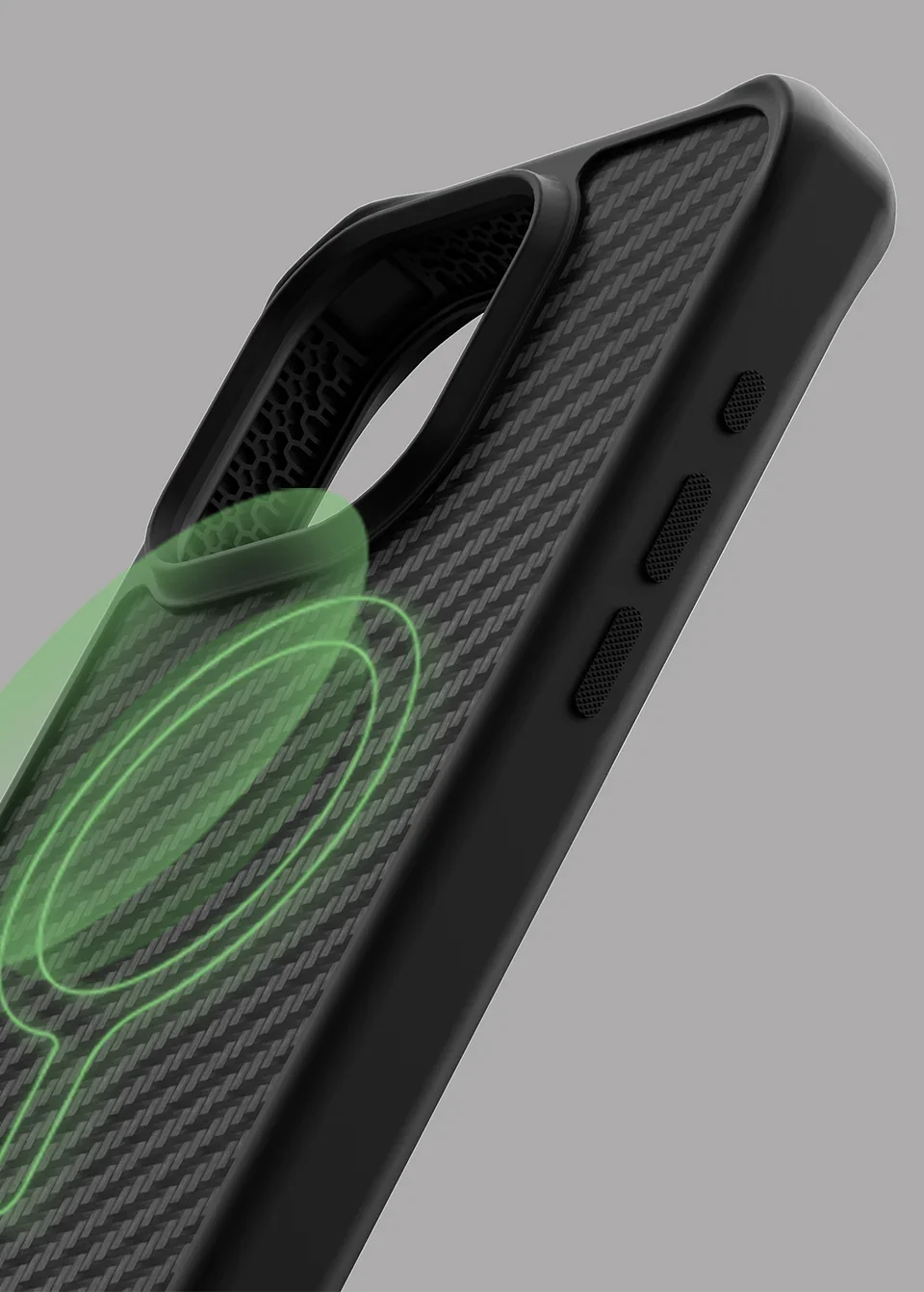 Product Features: Carbon Fiber Back , Compatible With Magsafe , Germ-Shield Technology , 3 M / 10 Feet Anti Shock