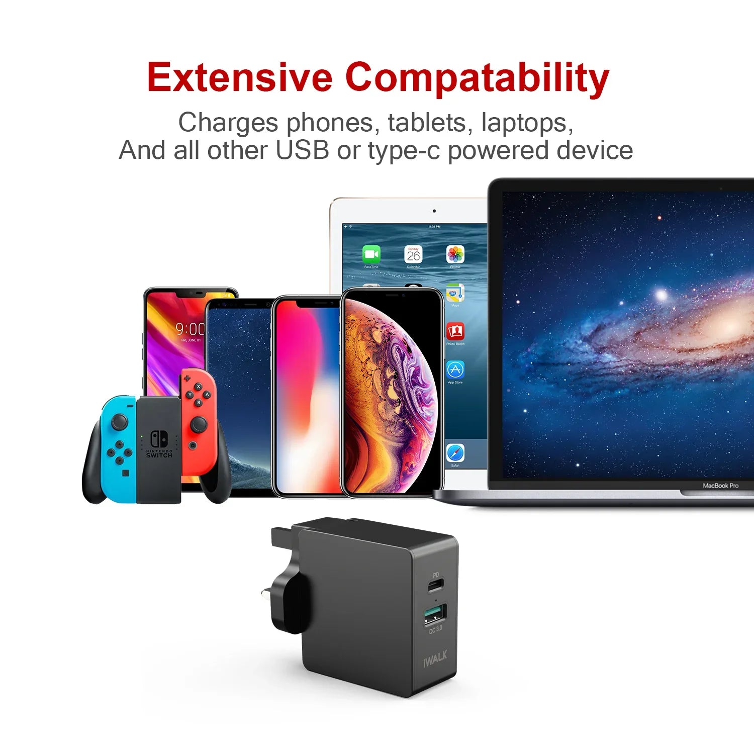 Product Features: 36W Fast Charger and Compact size. Super-fast charging speed regulates smart current. The foldable charging feet are convenient Compatible with many cables. Super-fast charging speed saves time Charging charger shortens charging time.