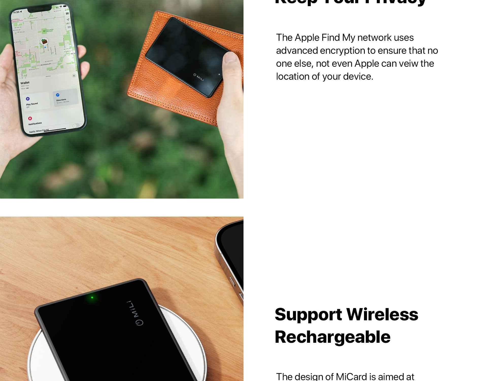 - Wireless Rechargebale-MiCard is equipped with a wireless rechargeable battery, ensuring long-lasting functionality and eliminating the need for frequent replacements.