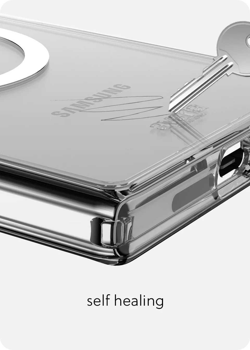 clear and cool as ice. this sleek-looking case is packed with features to keep your phone safe from everyday life extra strong magnets between two plates for a flat surface screen & camera bay protection 10 ft. drop protection classic clear design antimicrobial protection lifetime warranty self-healing scratch resistance