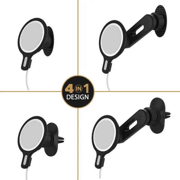 SCOSCHE Magic Mount for Magsafe 4-IN-1 (Vent- Dash- Swing) + 20W PD Car charger – Black