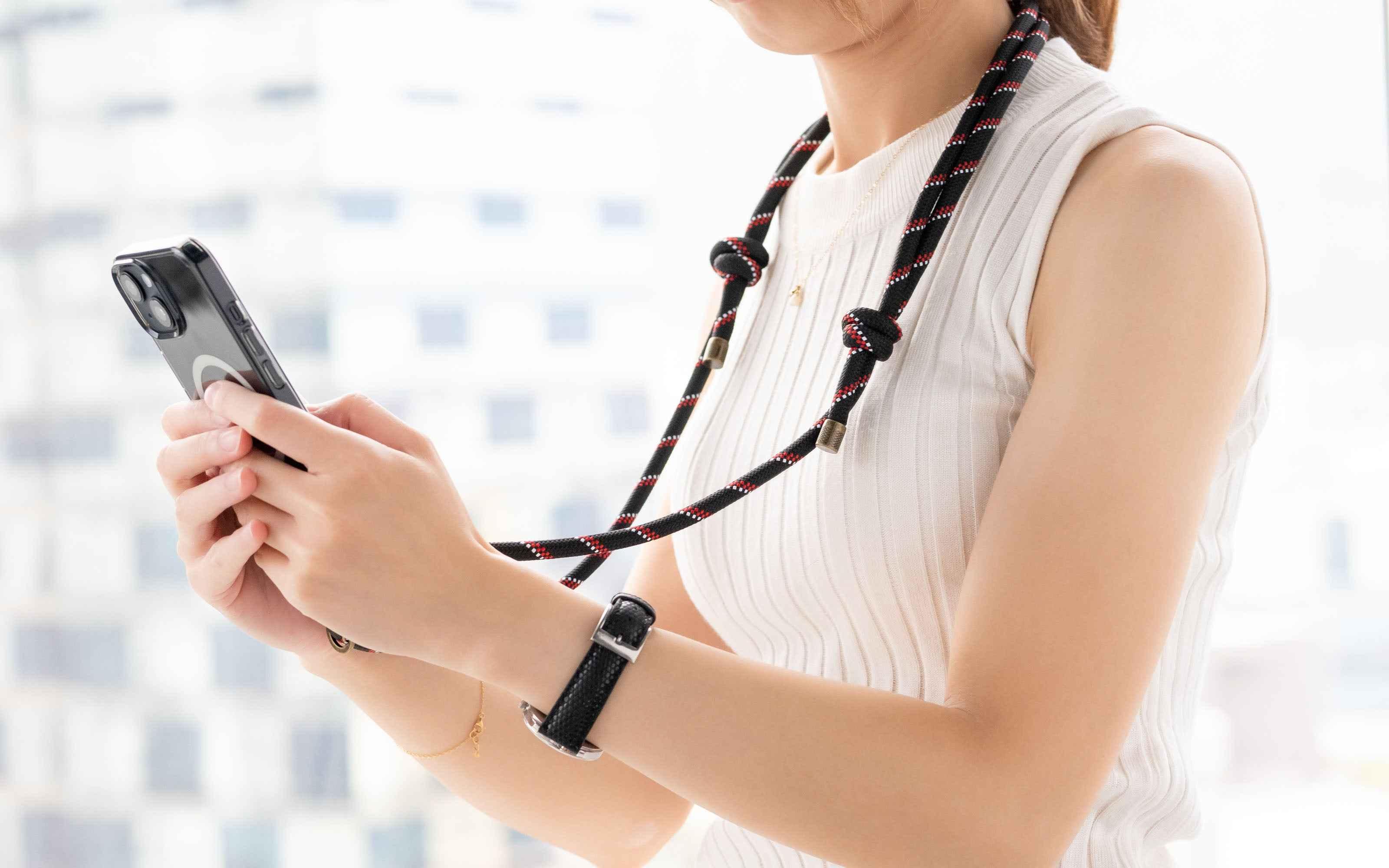 Product Features: 8mm durable polyester rope., The adjustable strap is comfortable to wear either on your shoulder or neck. Detachable Design – Buckle on/off in a snap. Compatible with most full coverage cases.
