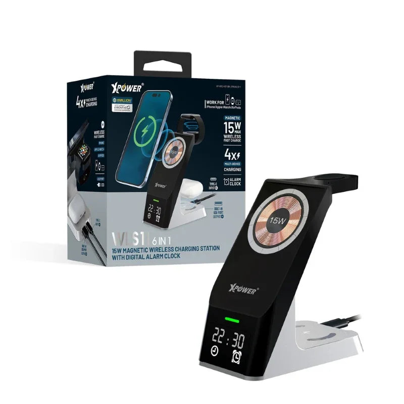XPower 15W Magsafe Charging Station with Clock Display – Black