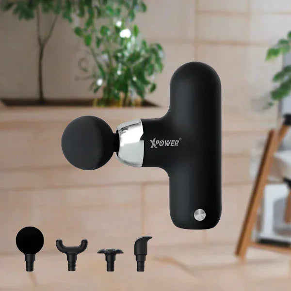 XPower MG13 Mini Massage Gun With 4 Massage Head- Black