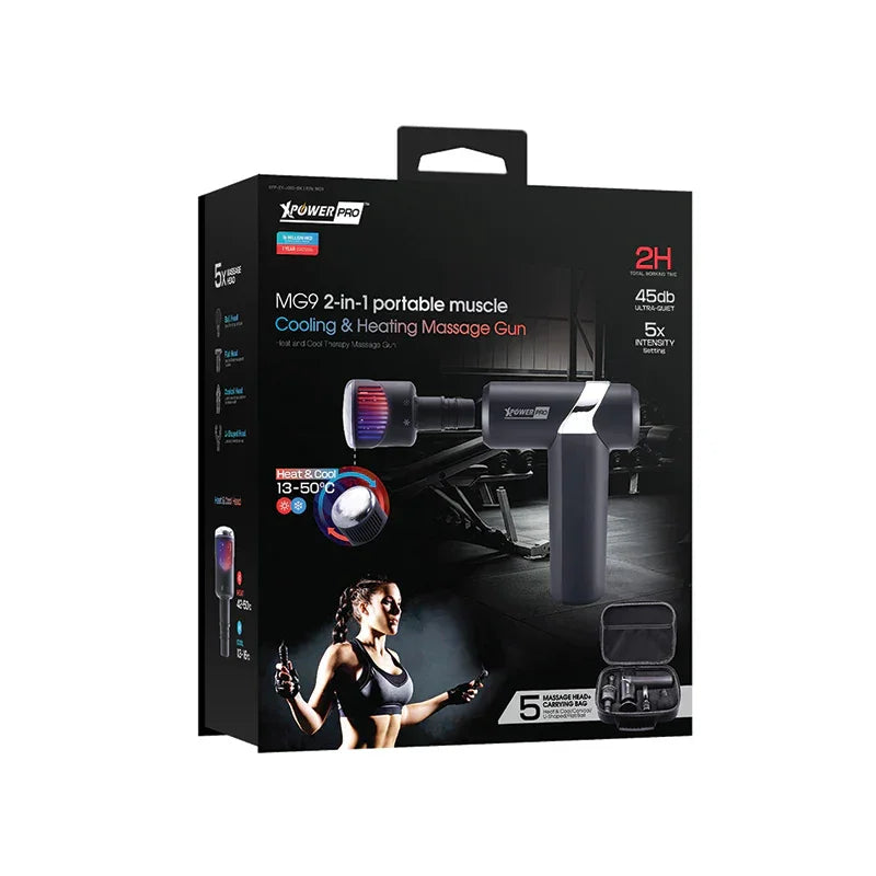 XPower Pro MG9 2IN1 Cooling & Heating Massage Gun With 5 Massage Head 2000mAh Battery – Black