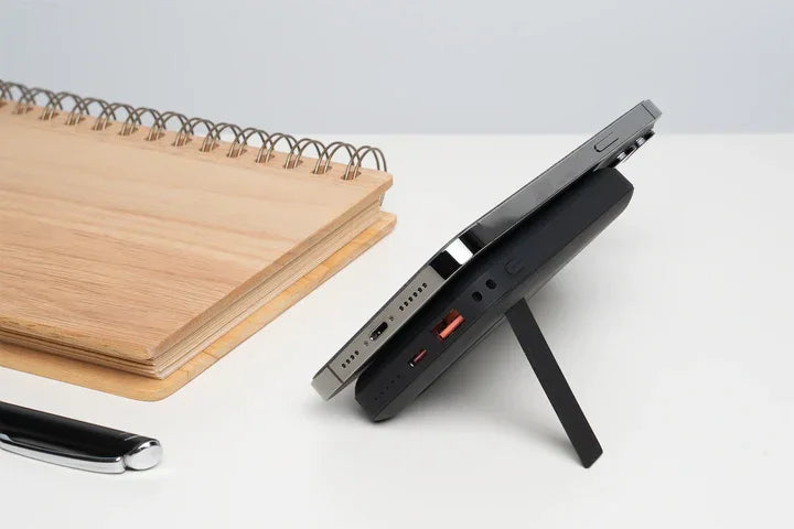 Product Features: MagSafe Compatible – Strong magnetic fix. 10,000mAh capacity. Recharge 2 to 4 times your iPhone. USB-C & USB-A ports. Fast charge: Max 15W wirelessly Max 20W wired. Can charge 3 devices simultaneously. Holder shaft to keep the iPhone in docking position while charging.