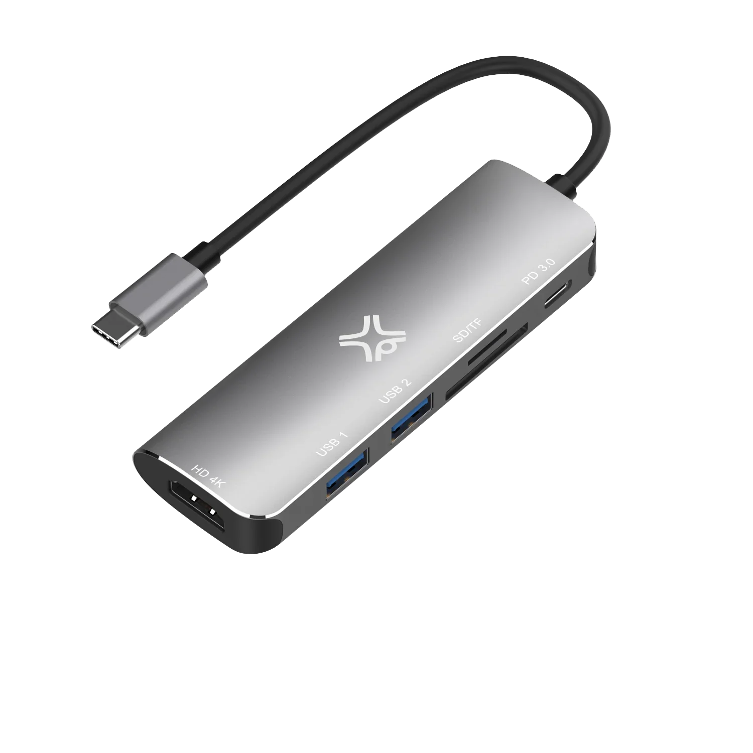 Product Features: Add 6 ports to your new MacBook or other USB-C laptop. USB-C PD and USB-A 3.0 for fast charging and data transfer. 4K HDMI video display. SD/Micro card reader. Durable, solid aluminum construction. Available in Apple Silver.